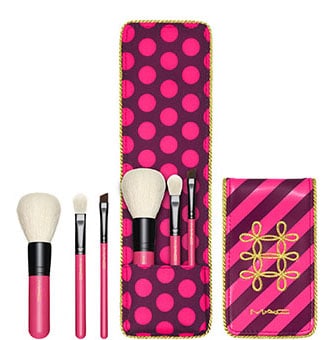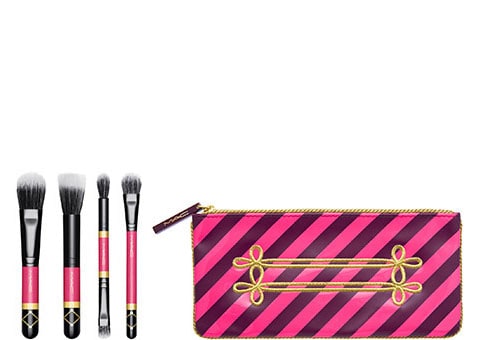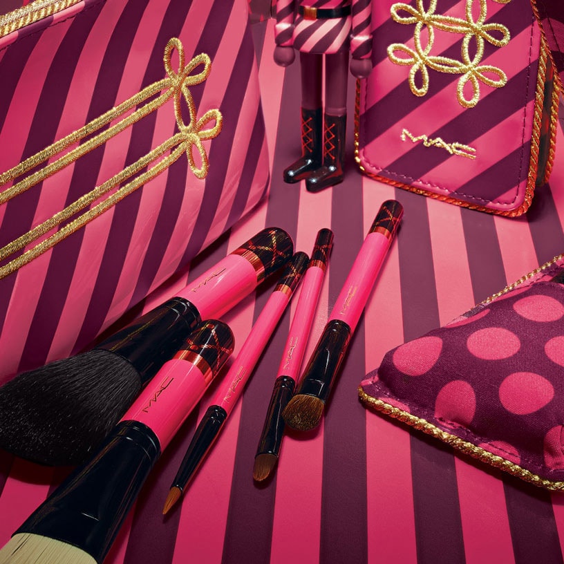 四个定制的魅可圣诞限量刷子套装 - 分别是必备,多功能,基础和修容刷具组 - 为你带来触手可得的完美妆容。全部配有金色刺绣的紫红色手柄并装在匹配的紫红色勃艮第条纹袋子里。