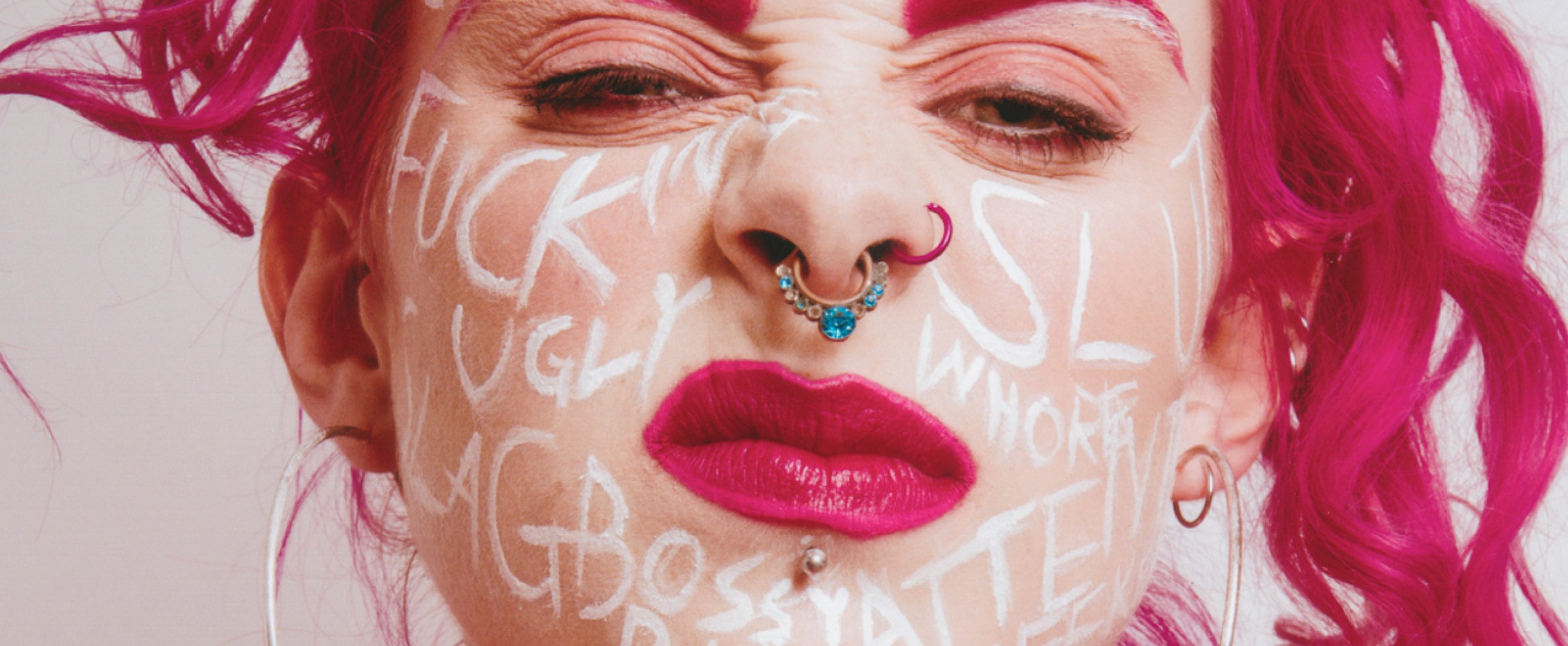 Pink, punky and a little profane, GIRLI is a fun, fearless London teenager here to freak you out. Armed with bratty beats and a microphone, she embodies pure Internet party chaos, with her moniker winking at the brash but saccharine energy of her hyperactive pop/rap songs like “ASBOys” and “Girls Get Angry Too.” Here, the gritty sonic and style rebel draws, sings and rhymes her way through our epic Scene Stealers experience and has us pondering the benefits of an alternate life as a circus performer.